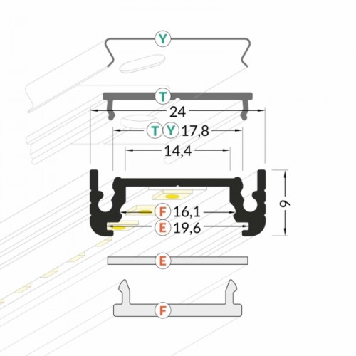 - Innenmaß: 14,4mm (B) (für LED-Stripes mit max. 14,2mm Breite)